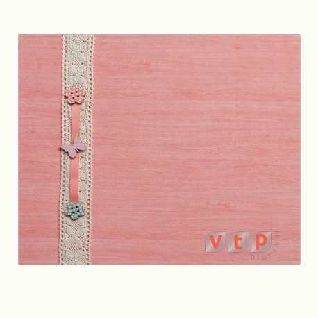 Álbum impresion digital con material madera rosa, punitilla y decoración con tapas duras. Impresión en papel silk doble cara 230 gramos.